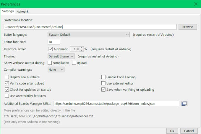 Step 2 : Install ESP8266 Board to Arduino IDEStart Arduino and open the Preferences window.