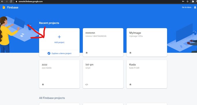 (If you haven't already, create a Firebase project: In the Firebase console, click Add project, then follow the on-screen instructions to create a Firebase project or to add Firebase services to an existing GCP project).