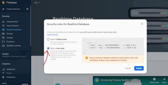 Create a Realtime Database.