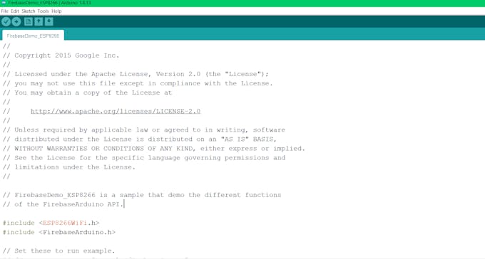 Step 6 : Code explanation.Open File > Examples > FirebaseArduino > FirebaseDemo_ESP8266.