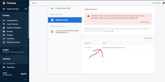 #define FIREBASE_AUTH "Your secret"